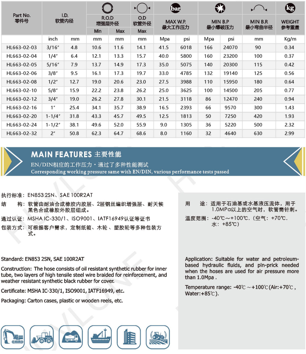 產(chǎn)品用途:適用于石油基或水基液壓流體,用于1.0MPa以上的空氣時(shí),軟管需針刺。