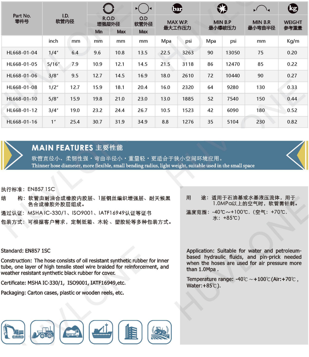 產(chǎn)品用途:適用于石油基或水基液壓流體,用于1.0MPa以上的空氣時,軟管需針刺。