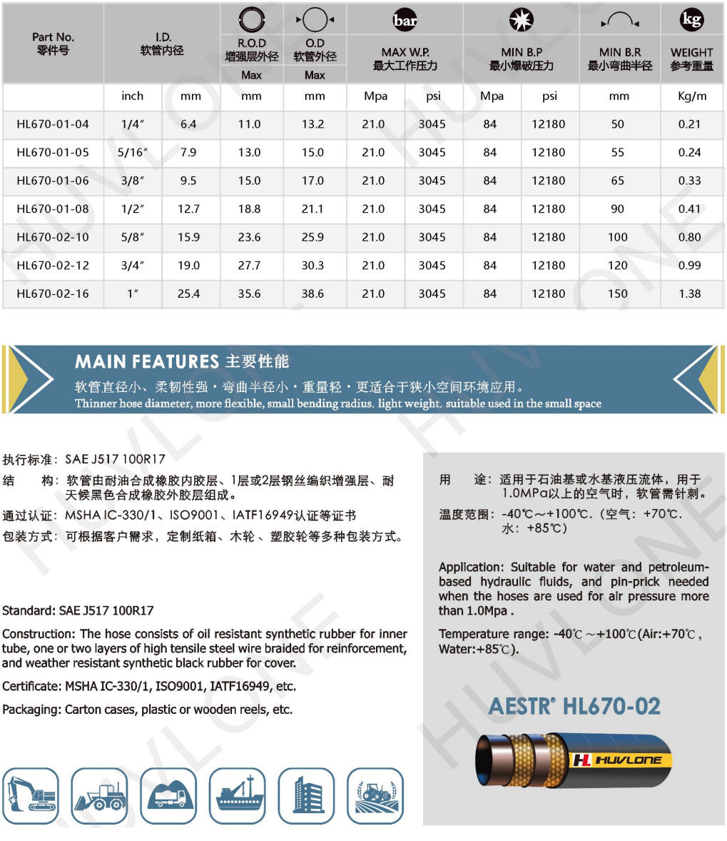 產(chǎn)品用途:適用于石油基或水基液壓流體,用于1.0MPa以上的空氣時,軟管需針刺。
