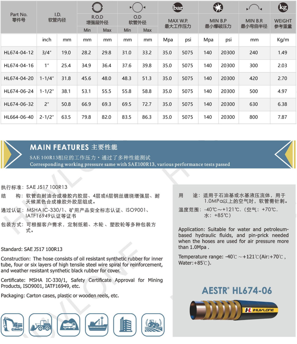 產(chǎn)品用途:適用于石油基或水基液壓流體,用于1.0MPa以上的空氣時(shí),軟管需針刺。