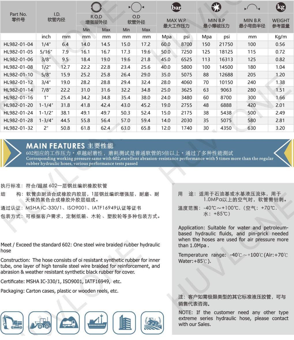 產(chǎn)品用途:適用于石油基或水基液壓流體,用于1.0MPa以上的空氣時(shí),軟管需針刺。