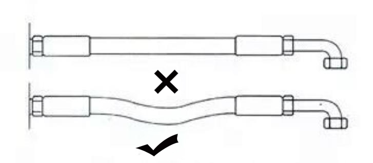 正確安裝膠管至關(guān)重要,如果膠管過(guò)長(zhǎng)不但影響外觀,而且增加成本。如果膠管太短,當(dāng)其受壓而伸展或收縮時(shí),沒(méi)有足夠的伸縮余地,會(huì)導(dǎo)致膠管被破壞。以下各圖顯示安裝膠管時(shí)應(yīng)注意的事項(xiàng),依此安裝可達(dá)最佳的工作效果并延長(zhǎng)膠管的壽命。