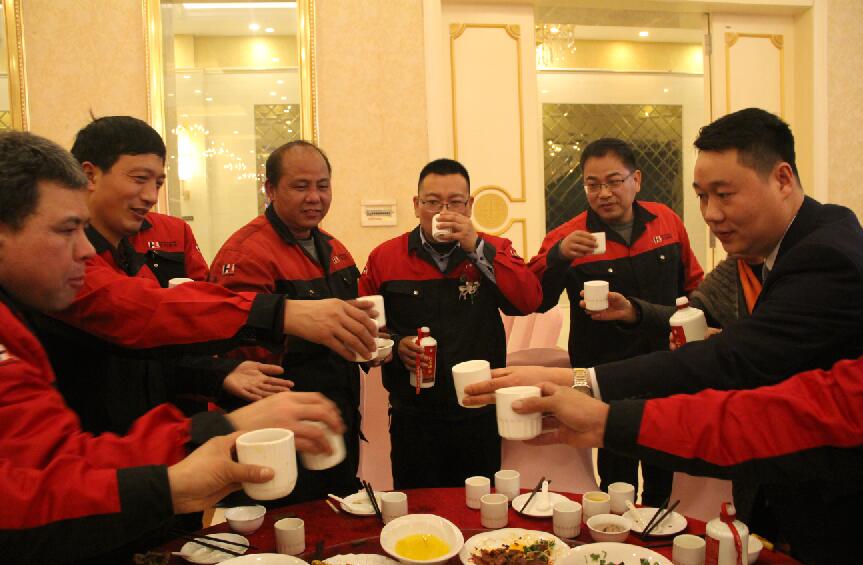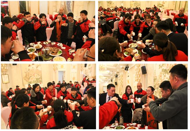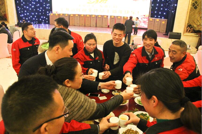 席間,董事長帶領(lǐng)著部門領(lǐng)導來到餐桌前對全體員工表達感謝和祝福。