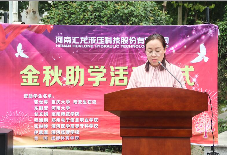 以金秋助學(xué)的平臺,搭建起困難學(xué)子的求學(xué)之路,用愛心托起學(xué)子的夢想。公司今年成立助學(xué)基金,對升入大學(xué)的東尉壹、甘文娟、程海鵬、張琳崢、伊思源、張世界等七名員工子女頒發(fā)了助學(xué)資金,其中張世界為碩博連讀,為所有員工家庭學(xué)子們學(xué)習(xí)的榜樣,希望所有員工都能樹立良好的教育觀念,把自己的孩子培養(yǎng)成才。