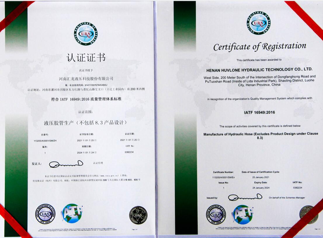 該證書的取得,標(biāo)志著公司的液壓膠管產(chǎn)品獲得了進(jìn)入汽車市場(chǎng)領(lǐng)域的綠色通行證,為公司積極開拓車用液壓膠管市場(chǎng)奠定了堅(jiān)實(shí)的基礎(chǔ),為參與汽車行業(yè)市場(chǎng)競(jìng)爭(zhēng)提供了有力保障。