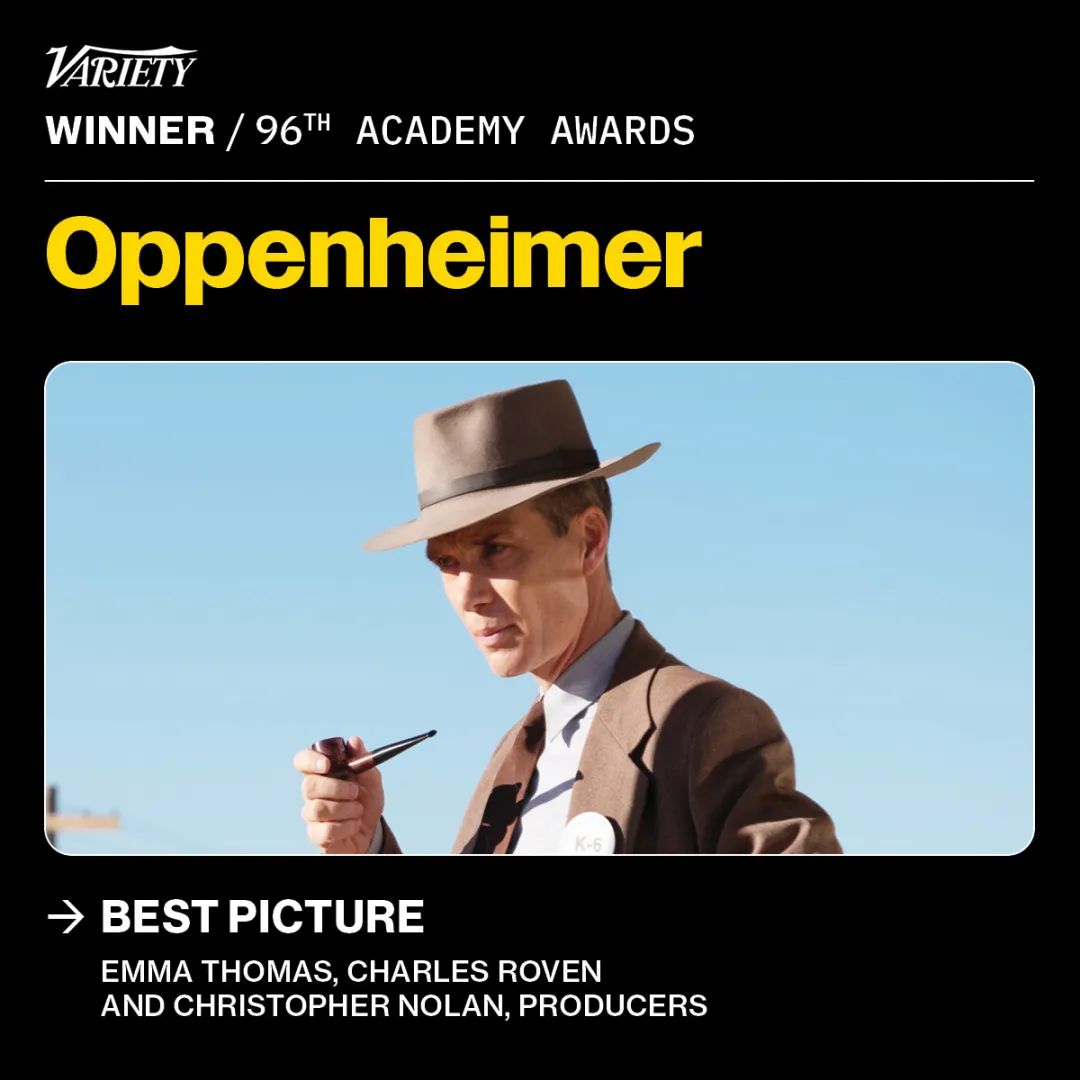 《奧本海默》獲得最佳影片等7項大獎成最大贏家!