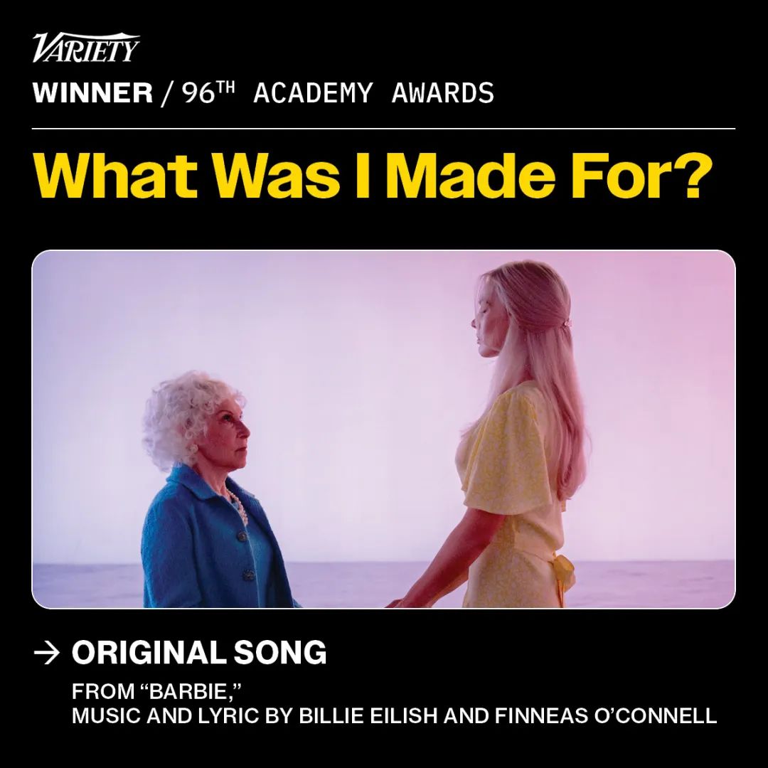 最佳原創(chuàng)歌曲:“What Was I Made For?”Billie Eilish和FINNEAS《芭比》
