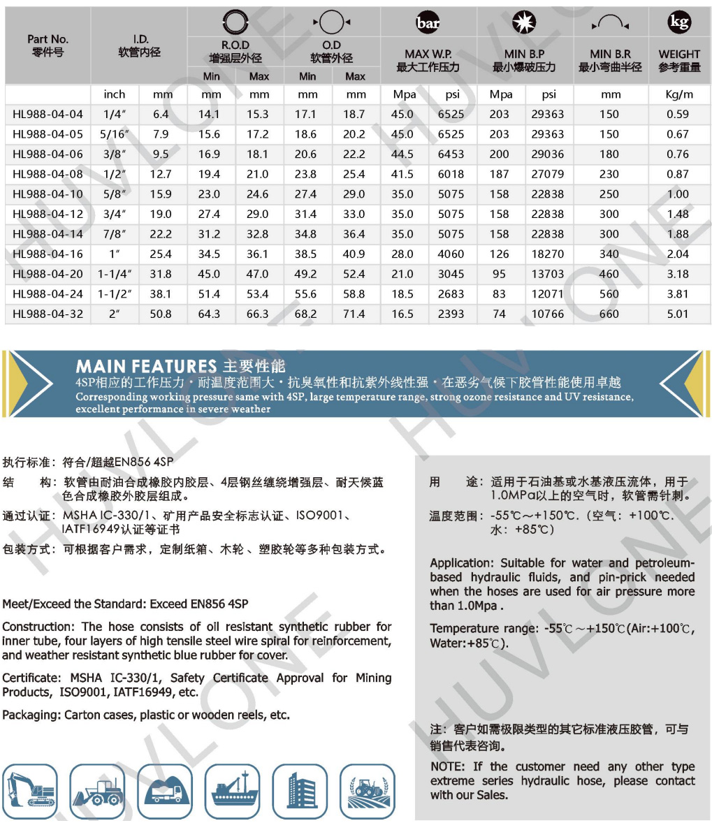 Product Usage:Suitable for water and petroleum-based hydraulic fluids,and pin-prick needed when the hoses are used for air pressure more than 1.0Mpa.