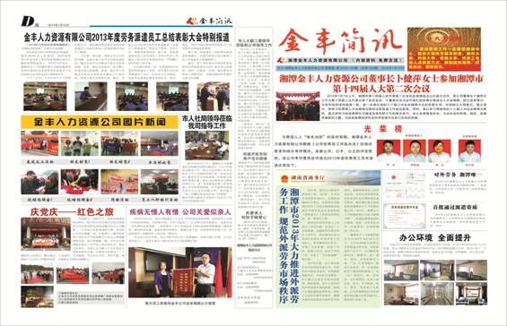 公司自辦報(bào)刊《金豐簡(jiǎn)訊》,展示企業(yè)文化,宣傳派遣員工正能量。