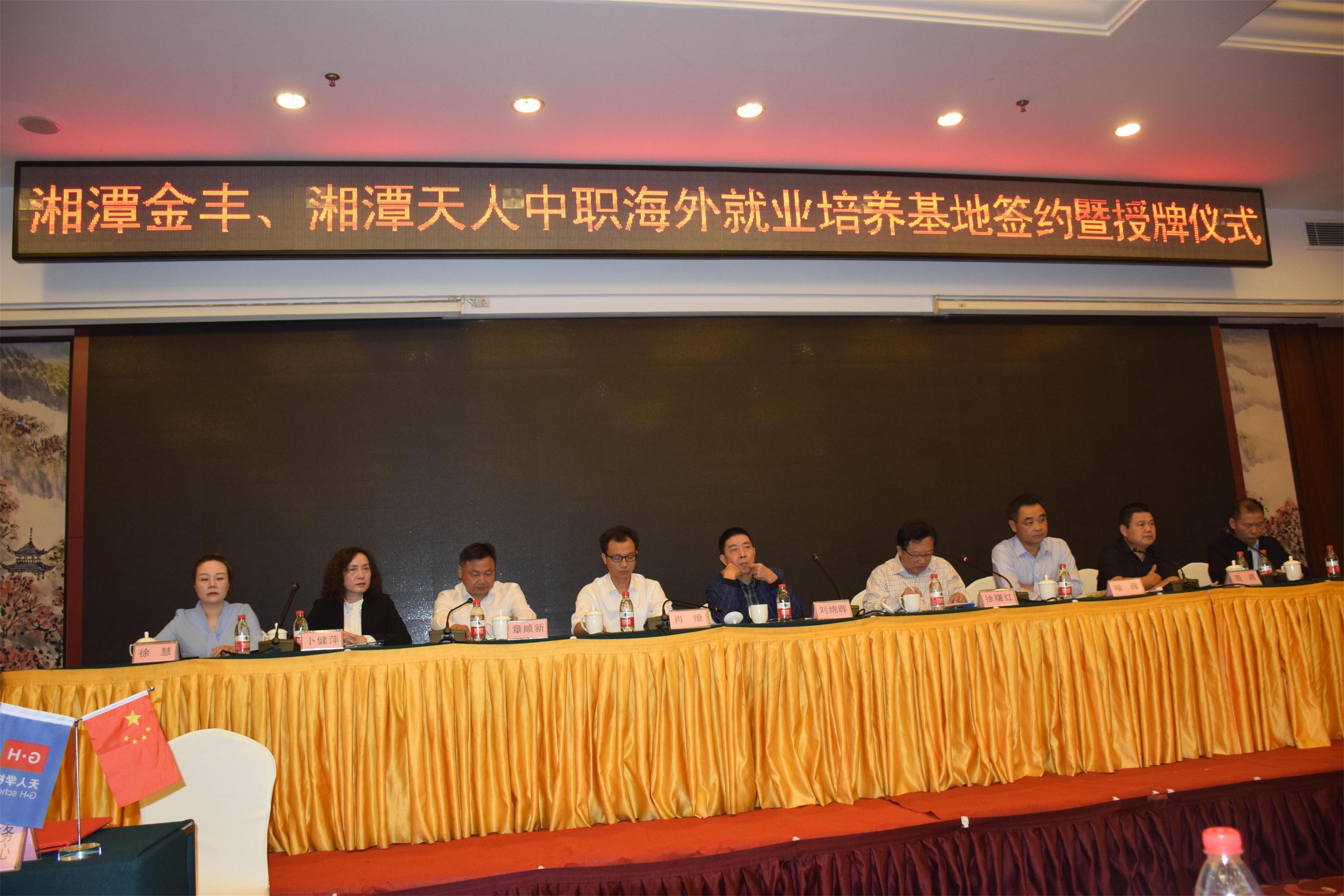 2018年10月11日上午9時30分,由湖南省對外勞務(wù)合作服務(wù)平臺、湘潭市對外勞務(wù)合作服務(wù)中心、湘潭縣外派勞務(wù)服務(wù)中心、湘潭金豐人力資源有限公司、湘潭天人中等職業(yè)技術(shù)學校達成政、企、校五方合作的簽約儀式暨海外就業(yè)培養(yǎng)基地的授牌儀式在鑫田大酒店隆重舉行。為貫徹落實國家及省政府關(guān)于推進對外勞務(wù)合作規(guī)范經(jīng)營、轉(zhuǎn)型發(fā)展的要求,認真執(zhí)行國家校企合作、產(chǎn)教融合的相關(guān)政策,促進和拓寬中職校學生的海外就業(yè)渠道,向有合格資質(zhì)的外派企業(yè)推薦經(jīng)過培訓的合格勞務(wù)人員,為海外市場和國家一帶一路建設(shè)儲備高端服務(wù)人才。在湖南省及湘潭市、湘潭縣商務(wù)部門的大力推進和主導下,在湘潭市、縣政府和教育部門的大力支持下,順利建成了以湘潭天人中等職業(yè)技術(shù)學校為依托的共同推進中職畢業(yè)生海外就業(yè)的合作平臺和培養(yǎng)基地。