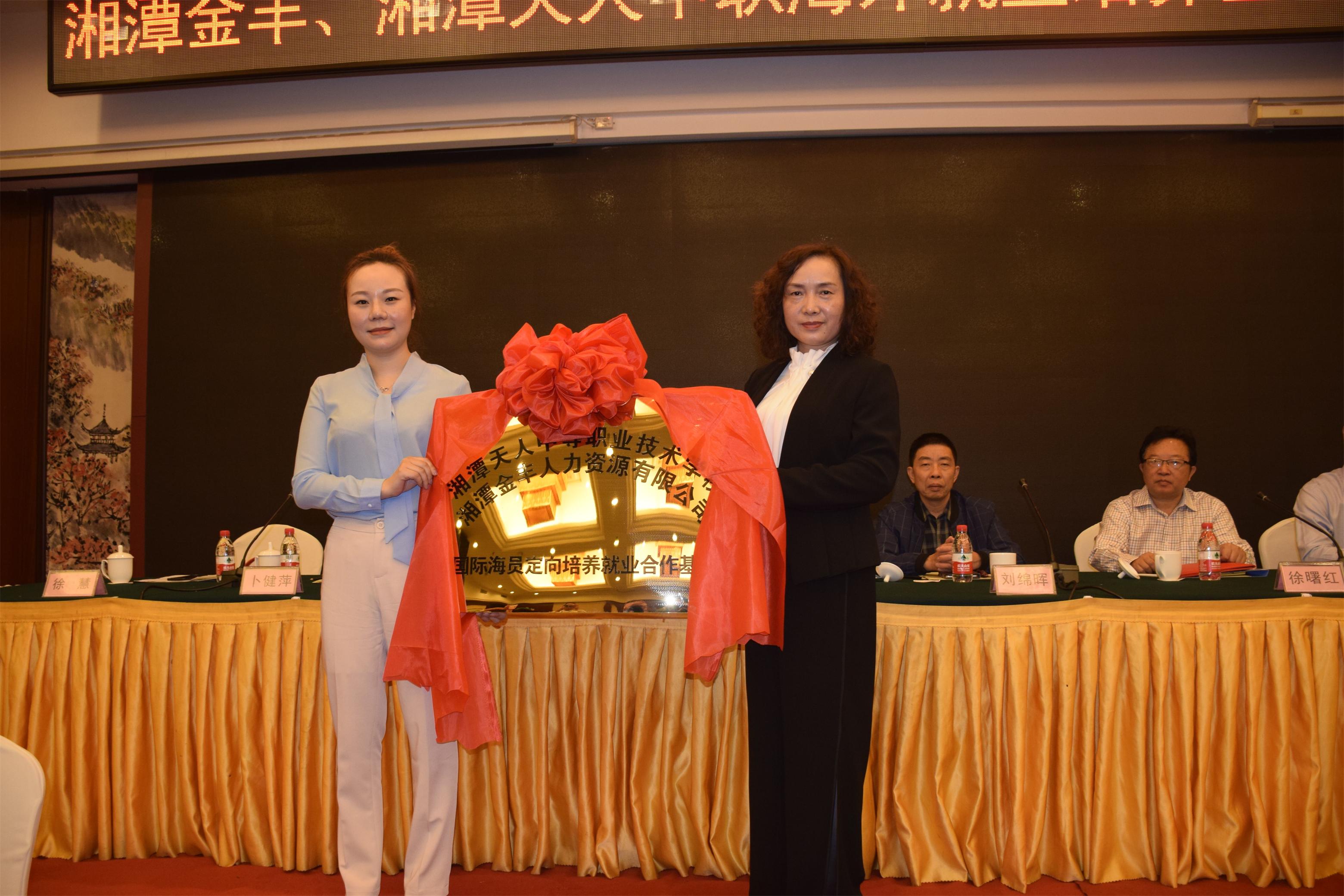 最后,由湘潭縣副縣長肖燎為湘潭天人中等職業(yè)技術(shù)學校、湘潭金豐人力資源有限公司授牌,這標志著雙方長期合作關(guān)系的正式建立。