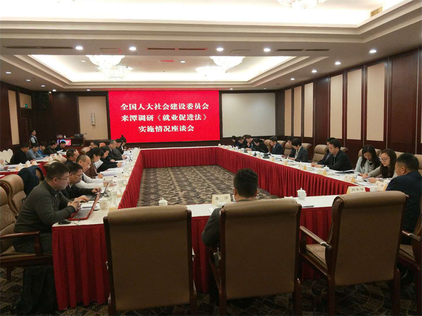 2019年3月28日上午,全國人大社會建設委員會調研組在我市盤龍山莊大酒店召開了《就業(yè)促進法》貫徹實施情況的調研座談會。