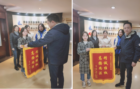 2021年12月1日上午,公司已離職派遣員工何喆、趙錦、胡水羅、劉沙4人將一面“精誠維權(quán) 高揚(yáng)尚法”的錦旗送到公司,對公司盡職盡責(zé)、精誠維權(quán)的服務(wù)表示誠摯感謝。