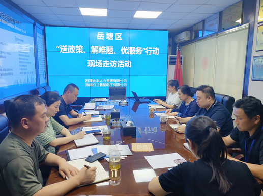 為進一步助力企業(yè)紓困解難,推動轄區(qū)企業(yè)高質(zhì)量發(fā)展。6月29日下午3點,岳塘區(qū)副區(qū)長宋洋帶領(lǐng)岳塘區(qū)政府辦、區(qū)人社局、建設(shè)路街道相關(guān)負責人一行來我司開展百名干部聯(lián)百企“送政策、解難題、優(yōu)服務(wù)”專項行動。宋洋副區(qū)長一行與企業(yè)負責人進行了深入的交流,詳細了解企業(yè)運行的實際情況,認真傾聽企業(yè)訴求和困難,現(xiàn)場解決發(fā)展難題,并為企業(yè)送上了惠企政策口袋書。