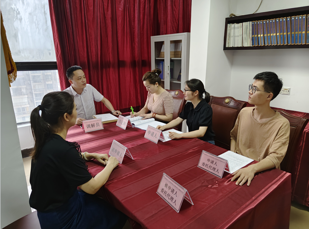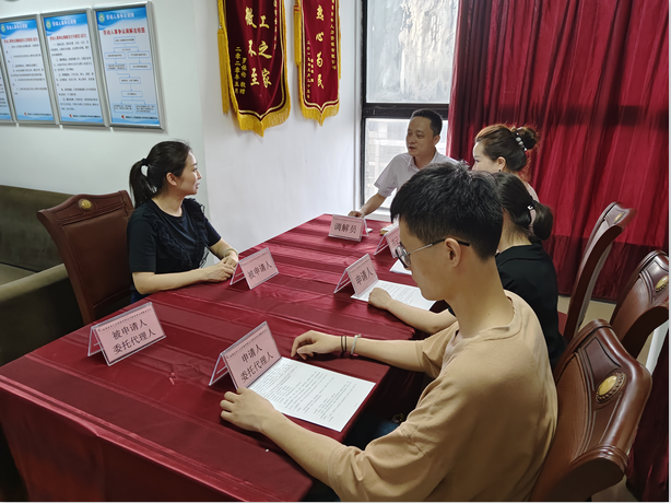 2022年7月7日,勞動(dòng)爭(zhēng)議調(diào)解委員會(huì)組織員工和企業(yè)代表正在做調(diào)解工作,維護(hù)勞動(dòng)者合法權(quán)益,建立和諧勞資關(guān)系。