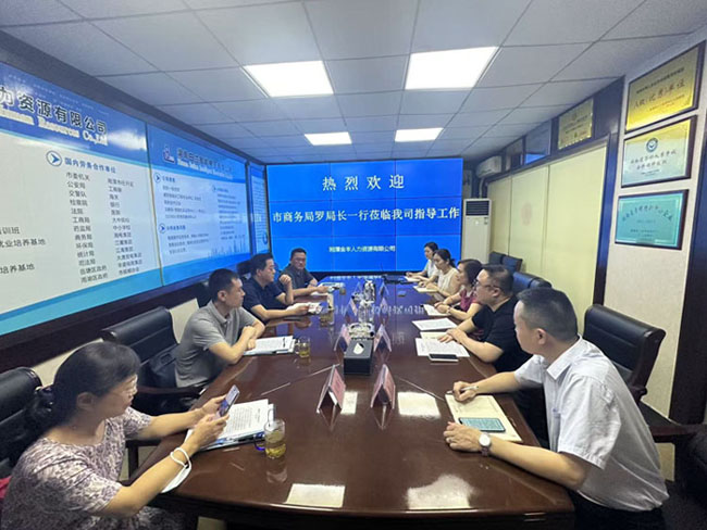 2025年7月15日下午16點(diǎn)30分,湘潭市商務(wù)局副局長羅罡帶隊(duì)蒞臨我司深入開展“三聽三問”活動(dòng),傾聽企業(yè)心聲,了解企業(yè)需求,面對面為企業(yè)排憂解難,全方全角度支持外經(jīng)企業(yè)的健康發(fā)展。湘潭市對外勞務(wù)合作服務(wù)中心主任肖瓏、外貿(mào)科副科長伍劍波等一起陪同調(diào)研。